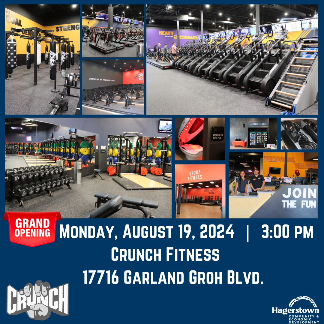 Join the City of Hagerstown Department of Community & Economic Development for the Grand Opening of Crunch Fitness on Monday, August 19, 2024 at 3:00 pm at 17716 Garland Groh Blvd.