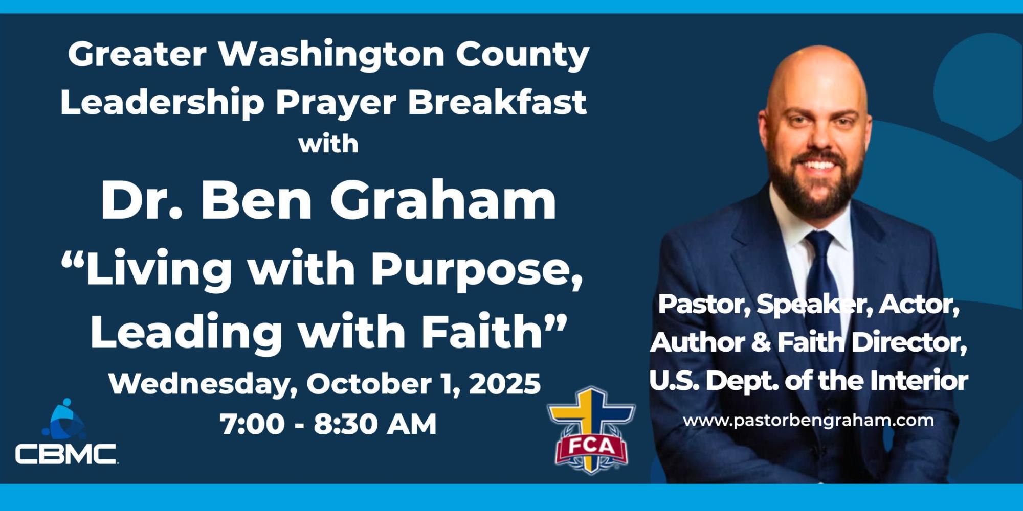 Mark your calendars for Wednesday, October 1st, at 7:00 AM for the 26th annual Greater Washington County Leadership Prayer Breakfast! Join us for a delicious meal and great networking opportunities at the Meritus School of Osteopathic Medicine. This event offers an opportunity to connect with others in the community and hear an inspiring message from Dr. Ben Graham, Faith Director for the U.S. Department of the Interior and President of Graham Family Films.
