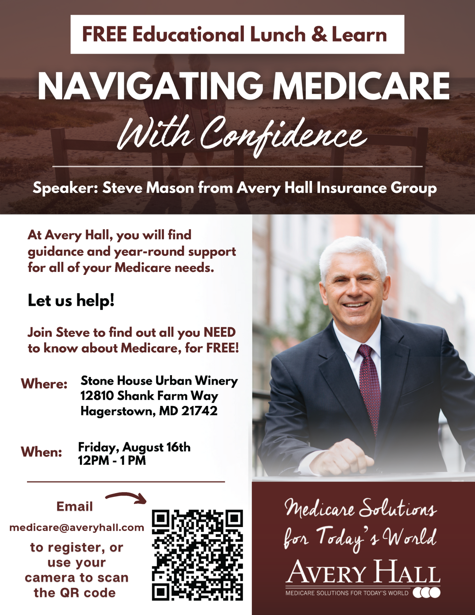 Navigating Medicare with Confidence - FREE Lunch and Learn Seminar Back to Search Navigating Medicare with Confidence - FREE Lunch and Learn Seminar Friday, August 16, 2024 (12:00 PM - 1:00 PM) (EDT) Description Additional Info × Stone House Urban Winery 12810 Shank Farm Way Hagerstown, MD 21742 United States Friday, August 16, 2024 (12:00 PM - 1:00 PM) (EDT) Registered Guests × Share × Print Email Add to Calendar Facebook LinkedIn X Pinterest Powered By GrowthZone