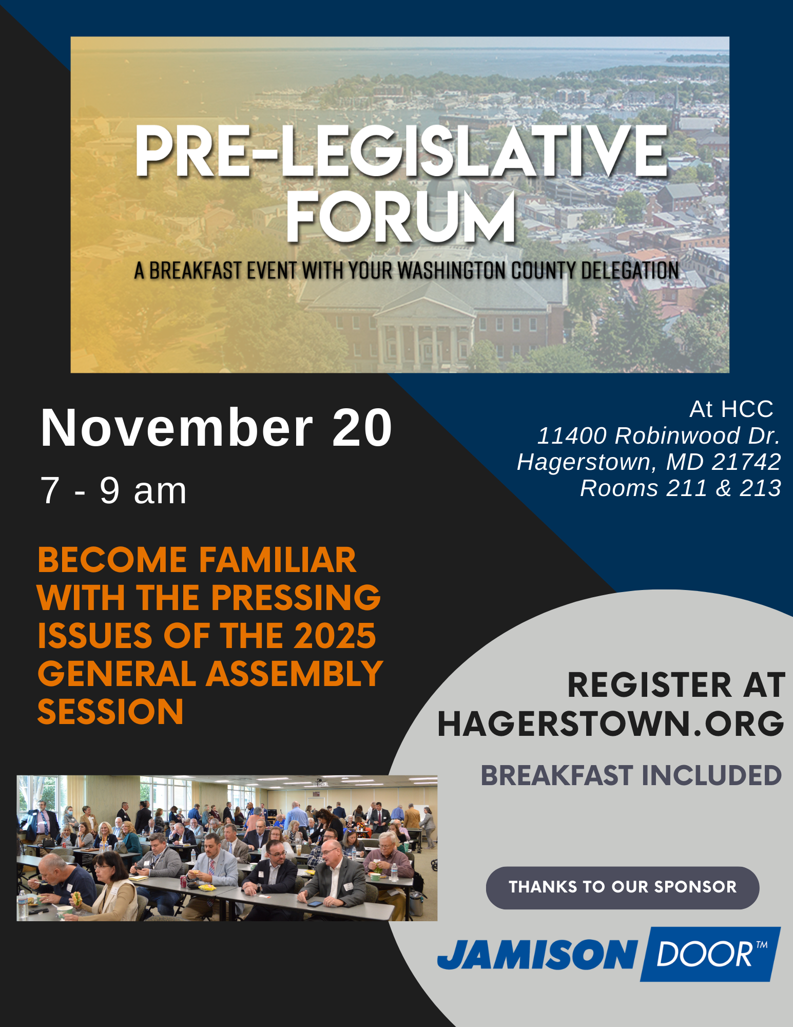 The Washington County Chamber of Commerce is offering you the chance to have breakfast with the Maryland state delegation and share your business concerns, face-to-face.