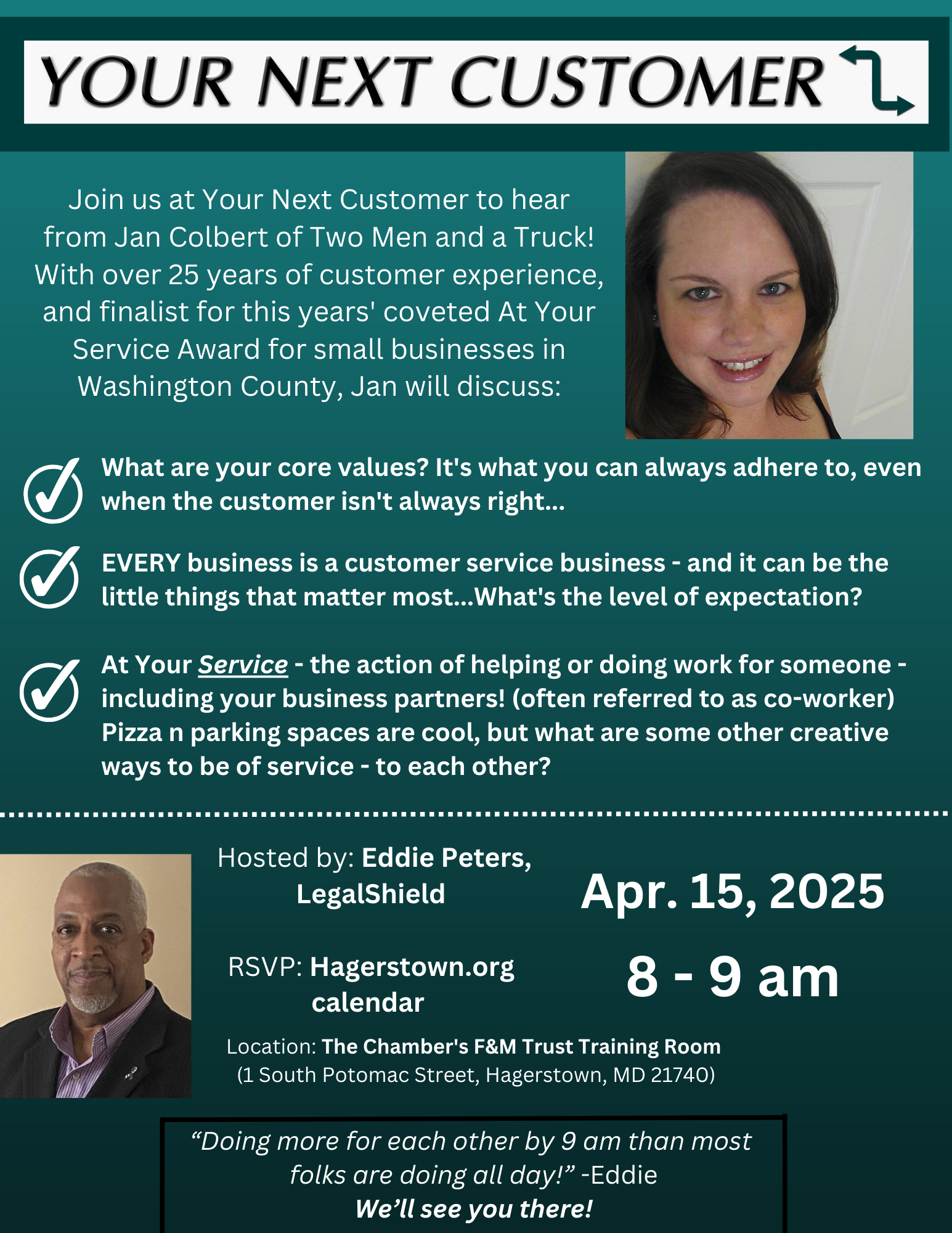 With over 25 years of customer service experience, Jan knows that the customer isn’t always right. What keeps her from going completely off the rails? Core Values. Every company and/or person should have them. Jan is going to breakdown Two Men And A Truck’s Core Values and how you can implement them into your day. EVERY business is a customer service business.