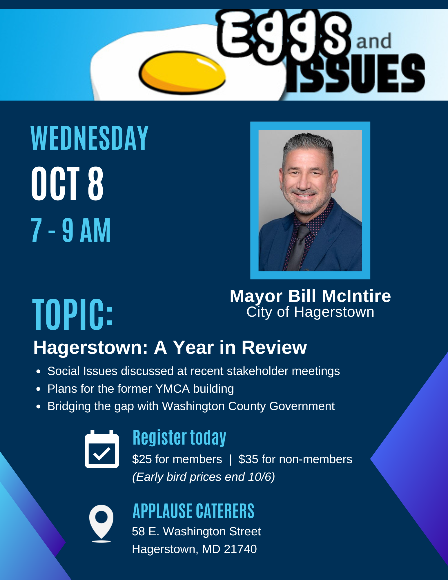 Payment, Cancelation & Refund Policy: Member rate applies to all employees of Chamber member companies in good standing. Payment must accompany registration. If you need to cancel prior to an event, you must contact the Chamber 72 hours in advance at 301-739-2015 ext.103 or maddie@hagerstown.org. If you do not cancel 72 hours in advance, you are responsible for your registration fee.